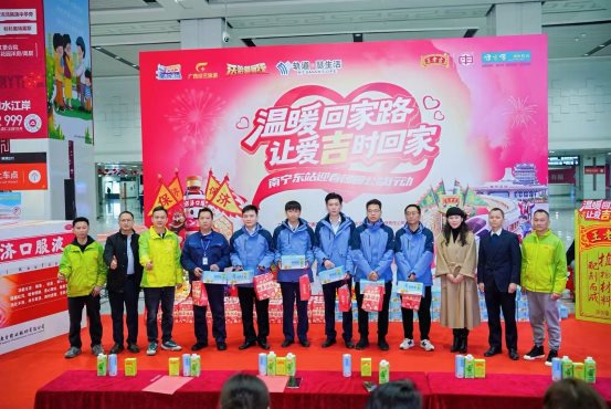 2月10日,春运正忙,年味渐浓。在南宁东站北广场,一场“温暖回家路,让爱吉时回家” 的公益活动温暖启程。j9九游会官方药业食品与药品两部门携手南宁轨道集团、广西广播电视台及多家爱心企业,共同为春运旅途注入一份暖心能量,让回家的路,更有温度。