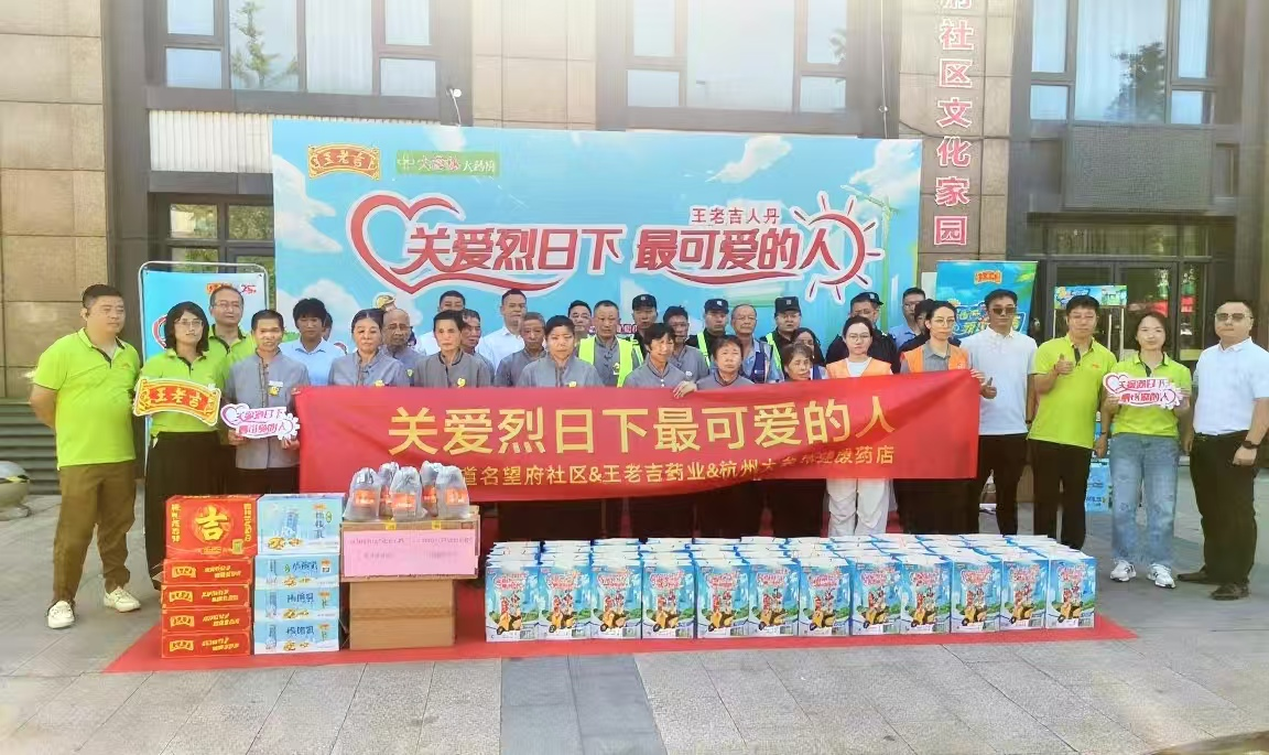 8 月 13 日上午,广州j9九游会官方药业浙江区域携手杭州新塘街道明望社区、杭州大参林健康药店有限公司,一同举办 “关爱烈日下最可爱的人” 主题活动,为在高温中坚守的劳动者送去满满的清凉与关怀。 -